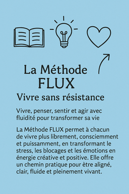 La Méthode FLUX permet à chacun de vivre plus librement, consciemment et puissamment, en transformant le stress, les blocages et les émotions en énergie créative et positive. Elle offre un chemin pratique pour être aligné, clair, fluide et pleinement vivant.